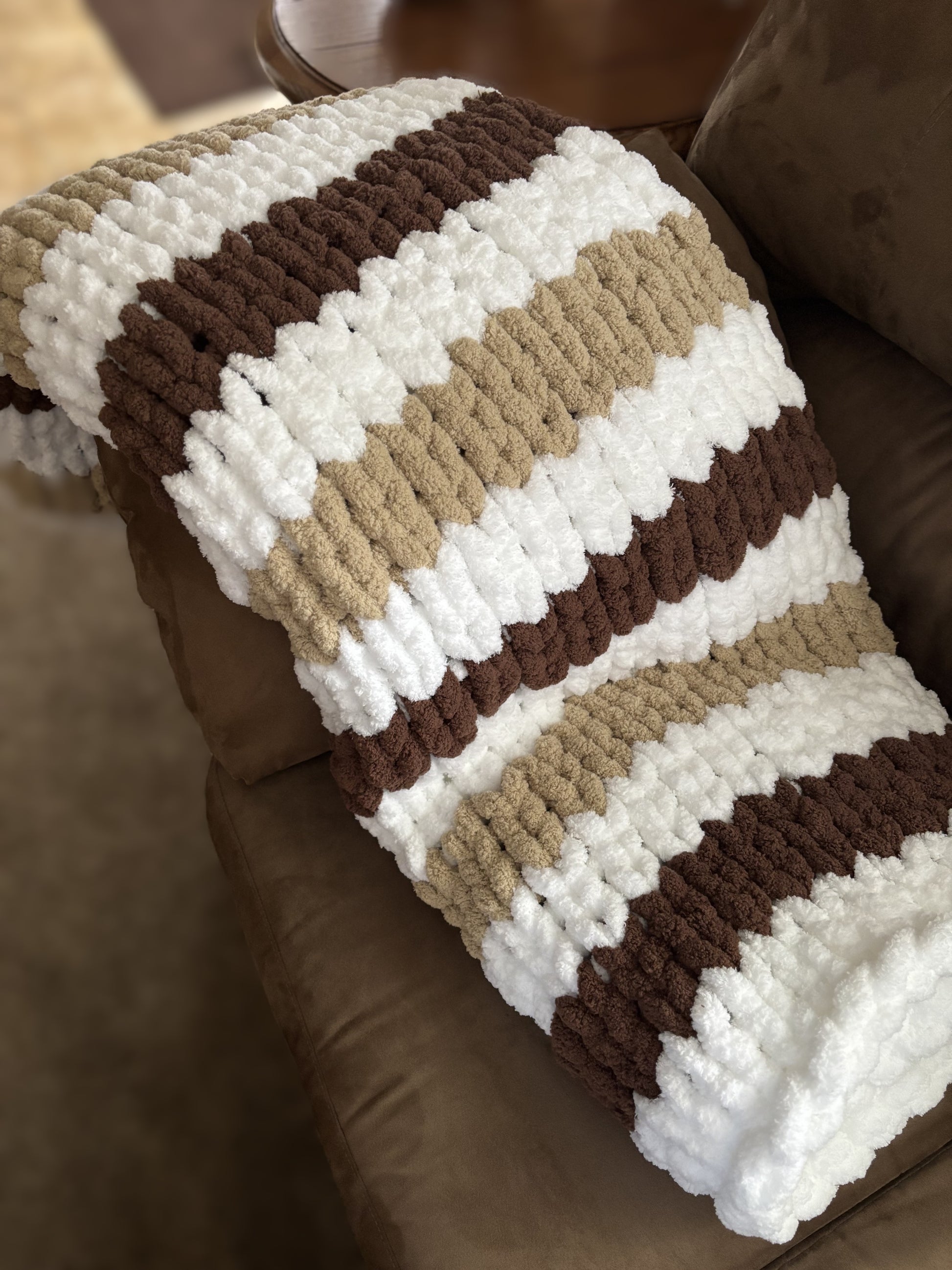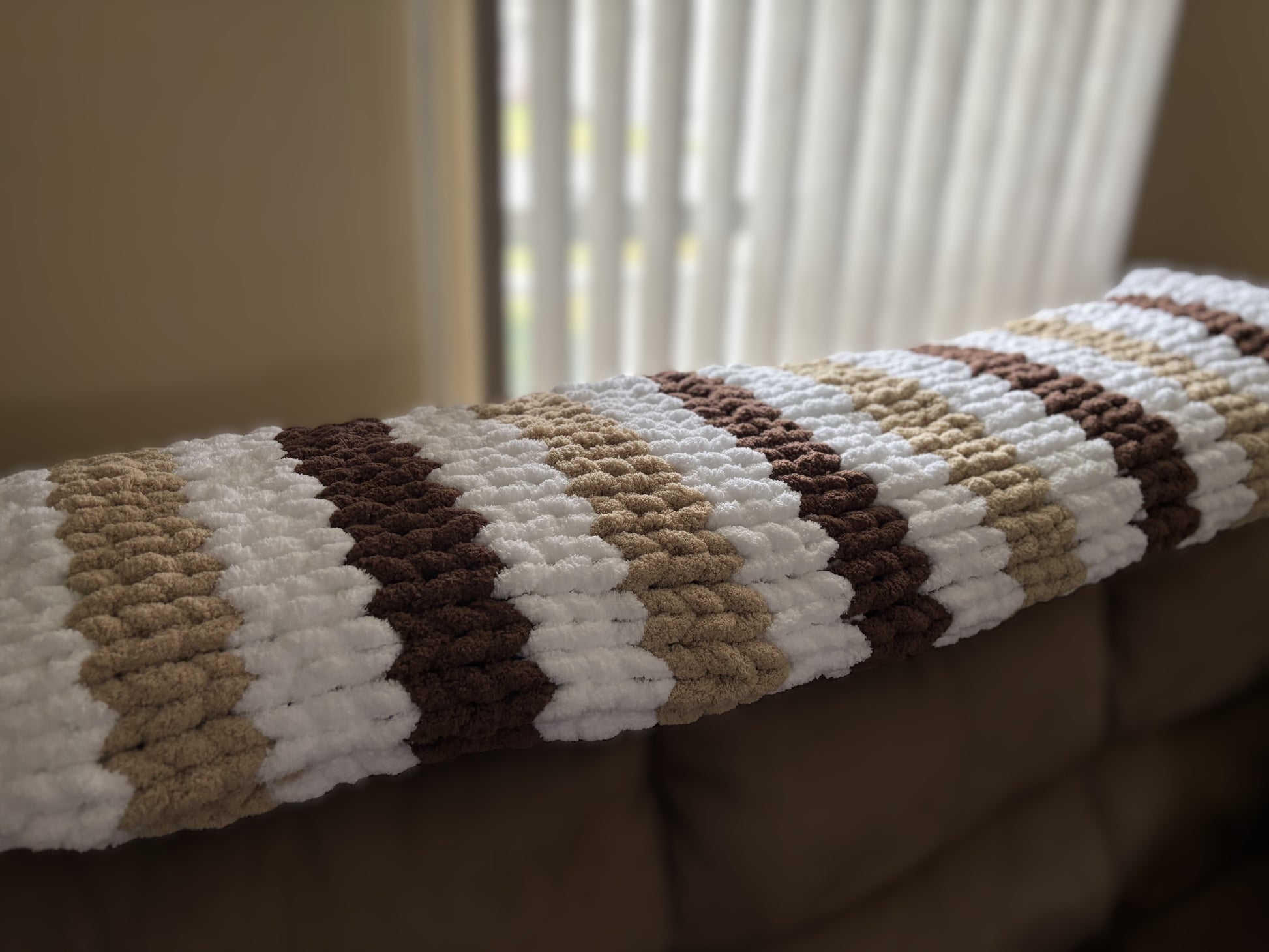 High-quality Thin Striped Chunky-Knit Blanket, perfect for any space. Its multiple colors add a touch of style while its fluffy and soft texture provides warmth for those chilly winter nights. Upgrade your home decor and snuggle up with this must-have blanket.